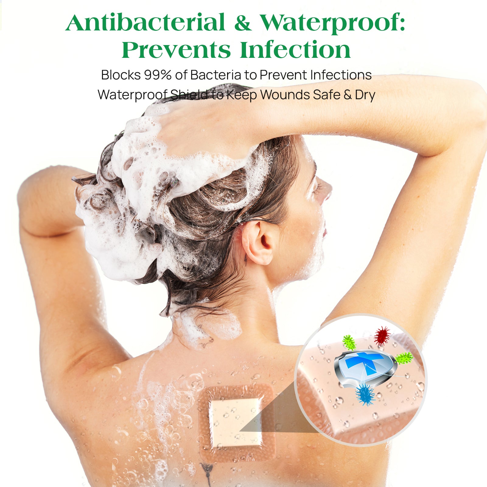- Waterproof, Breathable, Infection Resistant Wound care bandages offer excellent waterproofing properties. The semi-permeable polyurethane film is both waterproof and breathable, allowing oxygen and water vapor to pass through while blocking external contaminants. Keeps wounds safe during the healing process. Even when showering or exposed to water, silicone bandages prevent infection effectively.